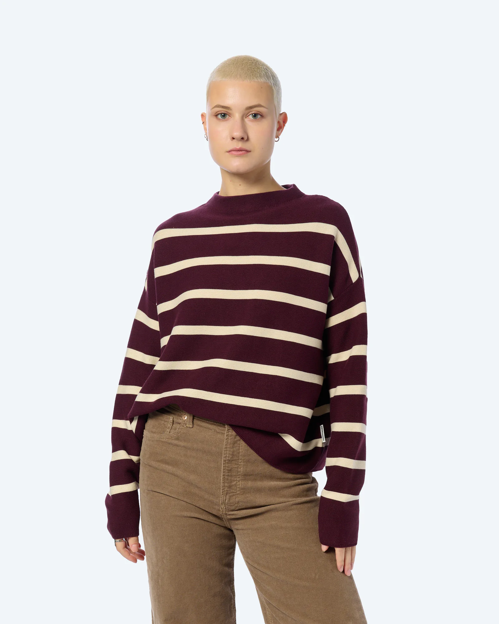 ARMEDANGELS MERINAA STRIPES Pullover Dark Cranberry/Oatmilk
