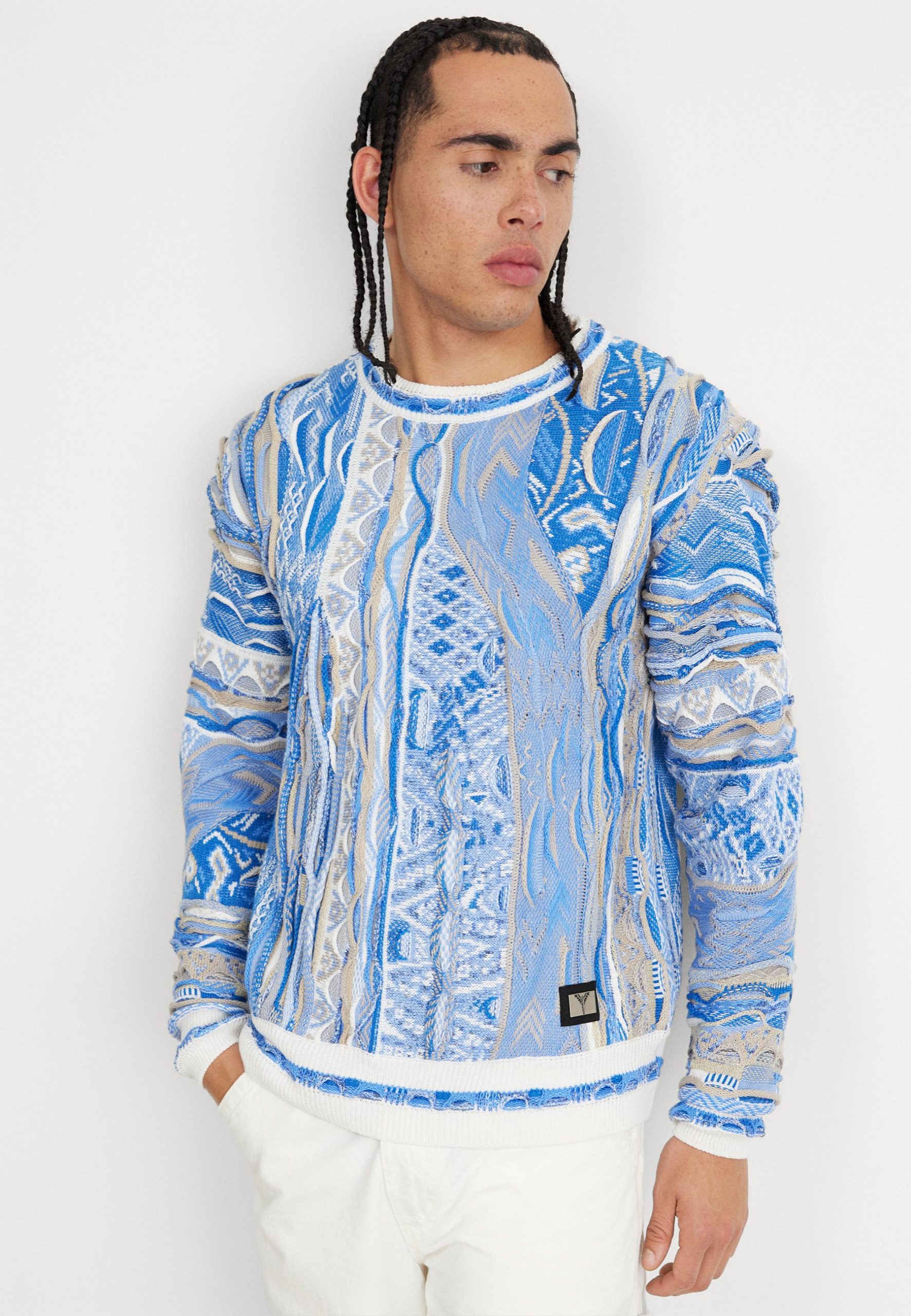 Carlo Colucci RUNDHALS UNISEX Strickpullover white blue/hellblau Zalando