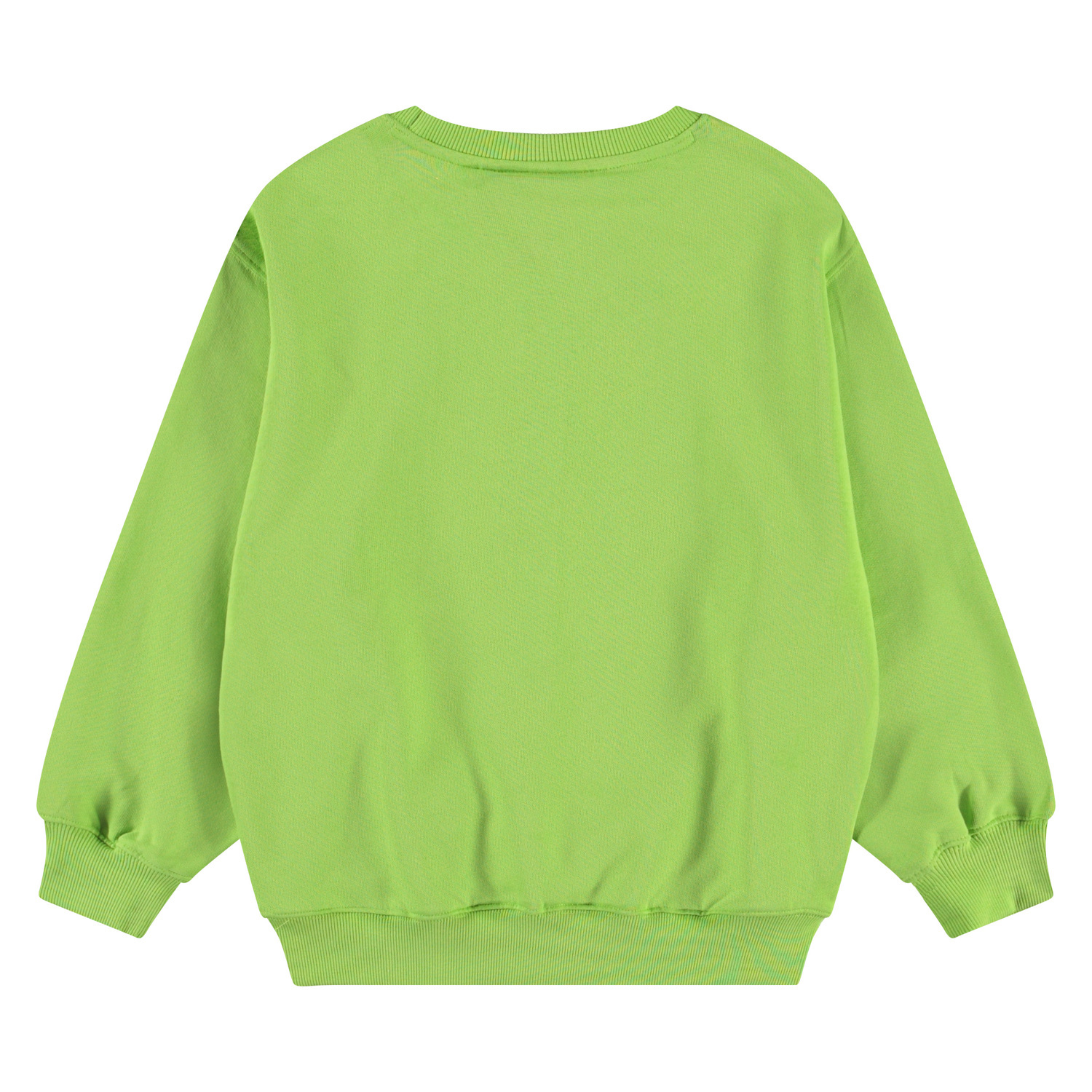 Monti Cambuci Grüner Pullover mit Druck für Kinder aus weicher, organischer Baumwolle mit gerippten Kanten am Hals, an den Ärmeln und am unteren Saum des Pullovers. Molo