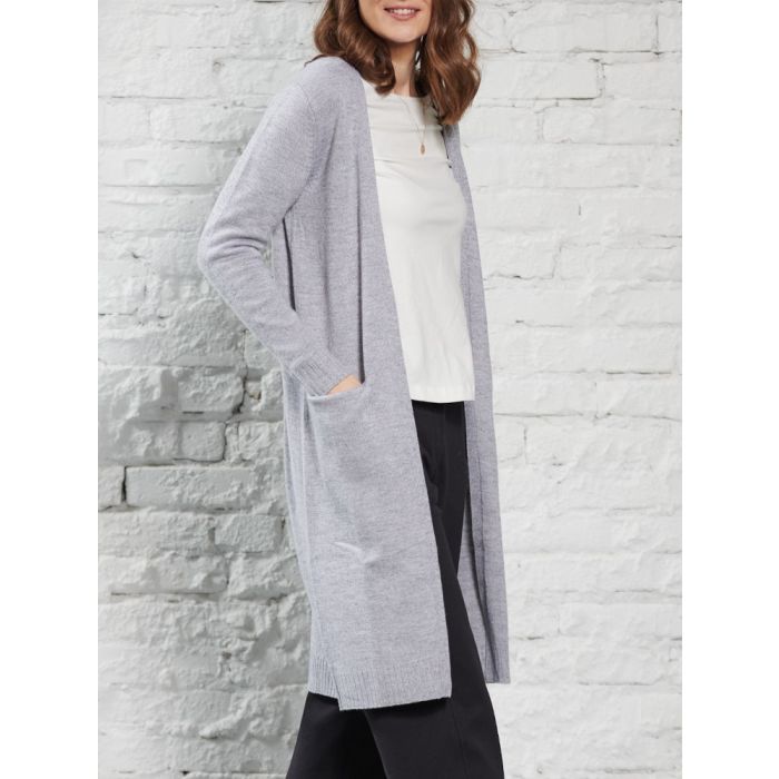 100% Merinowolle kbT Feinstrick Long Strickjacke grau von Kokon Zwo