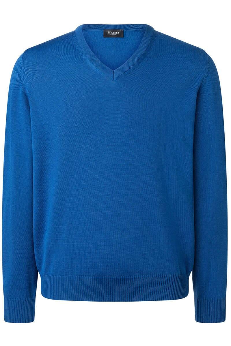 MAERZ Superwash Classic Fit Pullover V Ausschnitt blau, Einfarbig