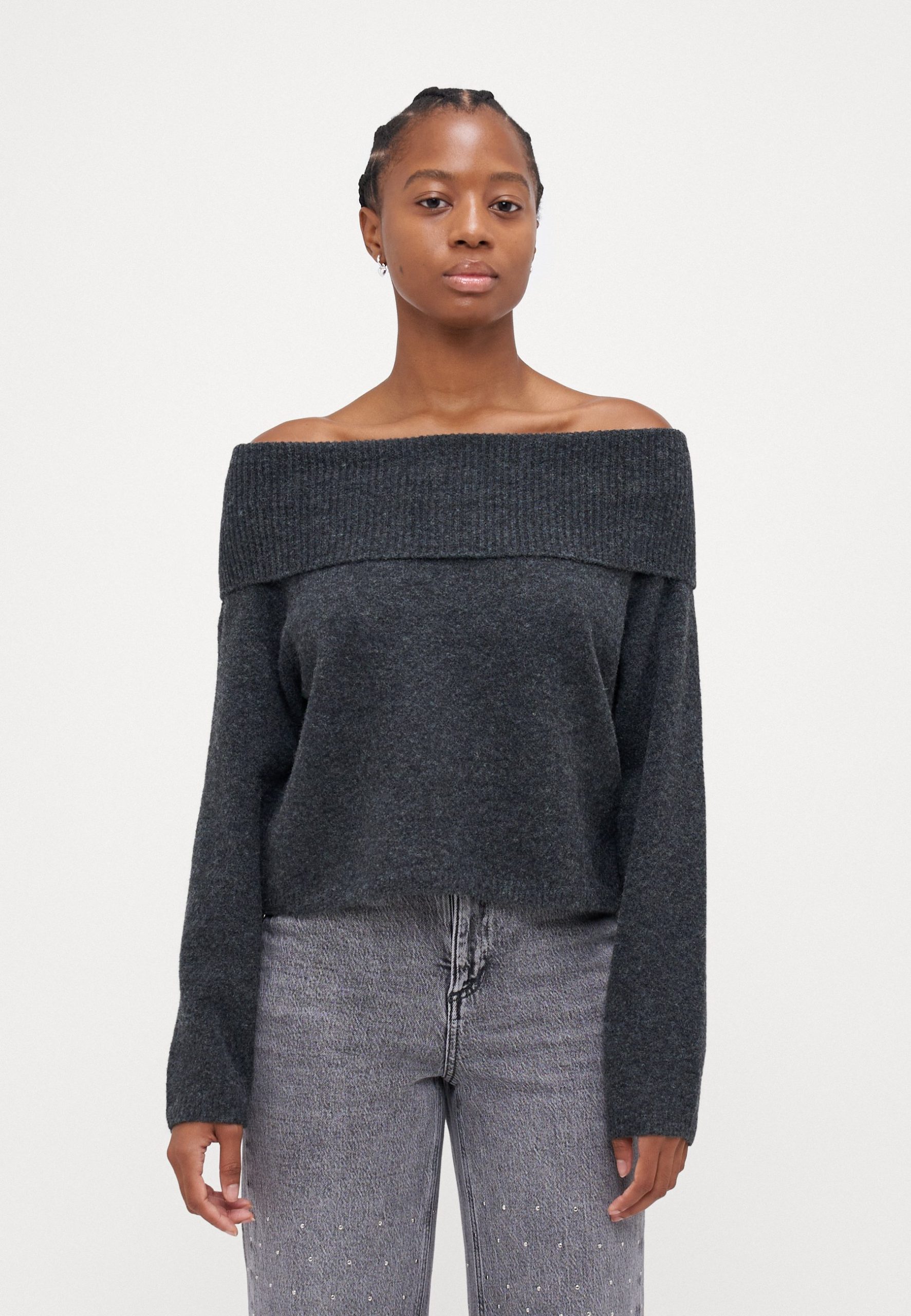 Vero Moda Petite VMBOOM OFF SHOULDER Strickpullover dark grey melange/dunkelgrau meliert Zalando
