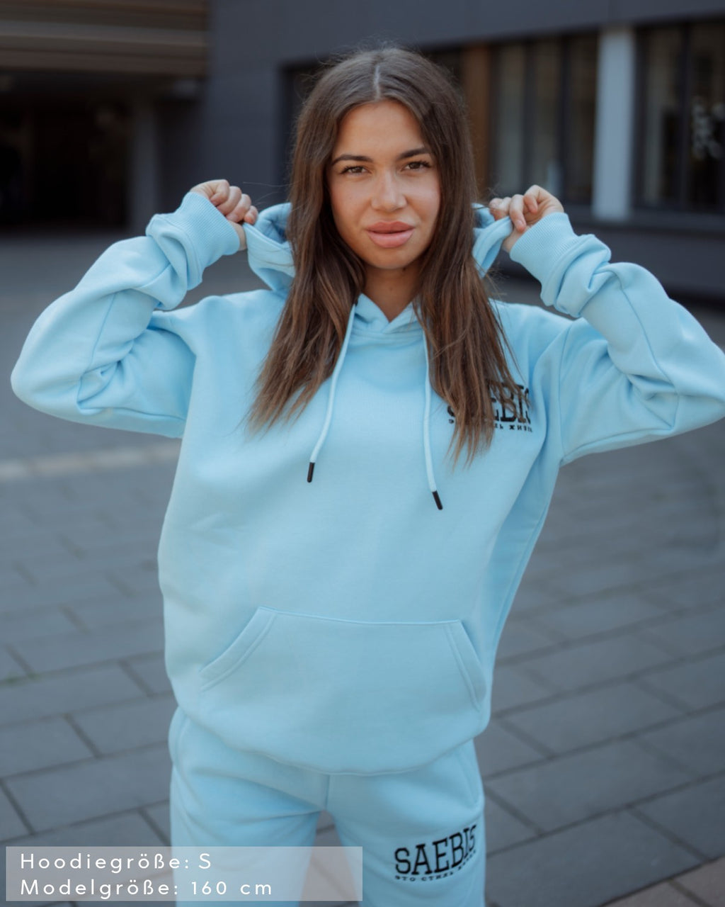 Lifestyle Damen Oversized Hoodie babyblau mit Stickerei by SAEBIS®