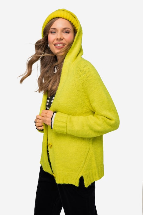 Strickjacke, Kapuze, Raglan Langarm, neon yellow | Laurason