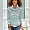 ONLY Damen Strick Pullover mit Rundhals Sweater mit Streifen hell grau blau