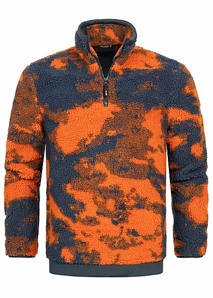 Indicode Herren Sweater Teddy Fell Look mit Zipper russet orange