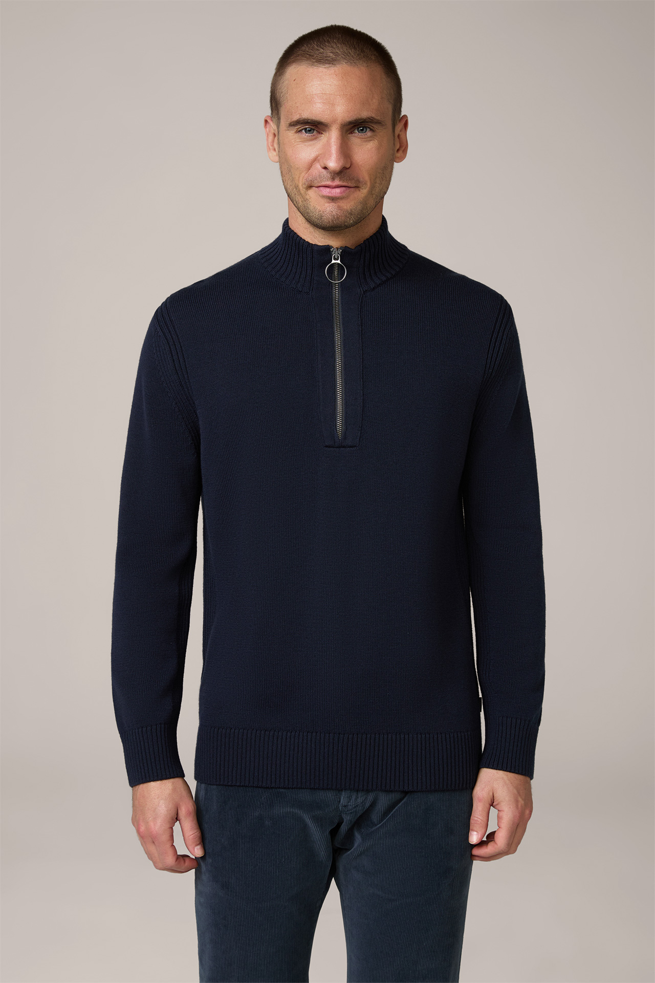 Schurwoll Troyer Pullover Aliko mit Baumwolle in Navy im windsor. Online Shop