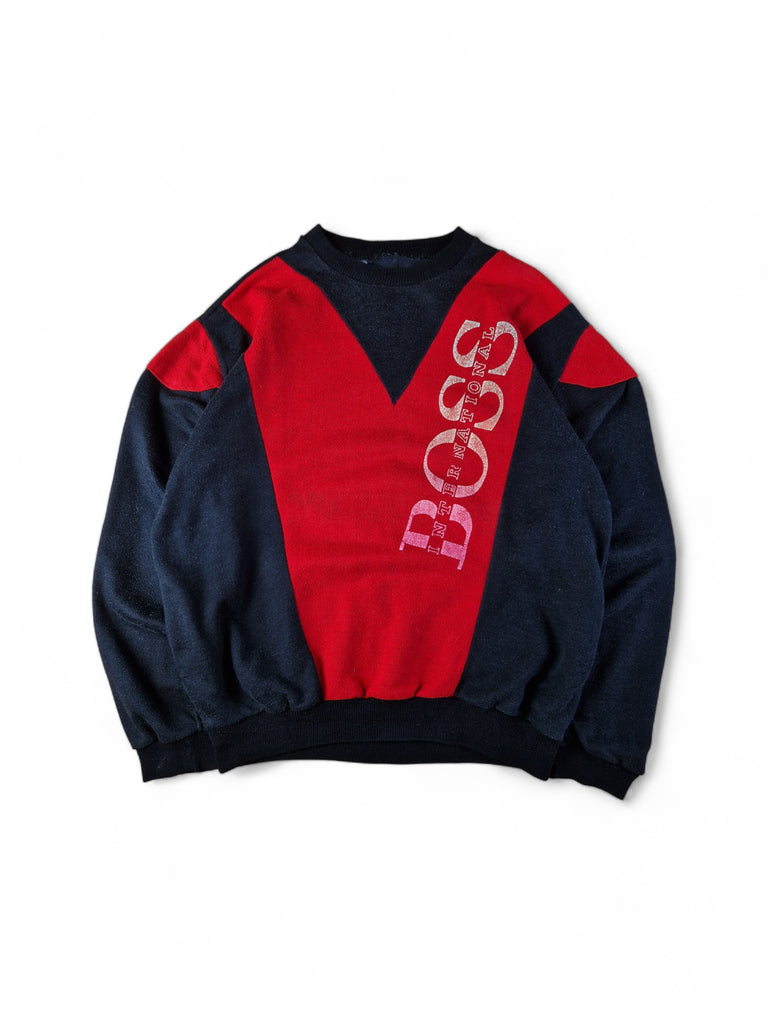 Vintage Hugo Boss Sweater early 80s Dünn Schwarz Rot L XL – RareRags