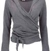 Pullover Damen Winter Damen Wickelpullover mit V Ausschnitt, Ballonärmel, Gerippter Strickpullover, Oberteil zum Binden vorne, für Herbst und Winter M …